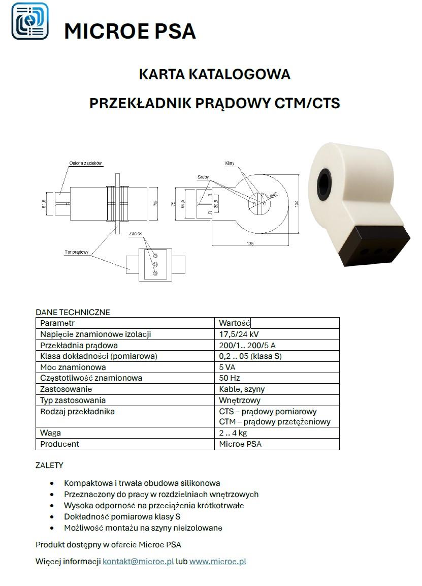 Rodzaj przekładnika CTS – prądowy pomiarowy CTM – prądowy przetężeniowy